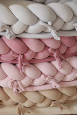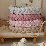 Gnijezdo za bebu s pletenicom stvara udoban i zaštićen prostor u kojem se beba može odmarati. Mekani rubovi okružuju dijete i pružaju osjećaj sigurnosti, što pomaže bebi da se smiri i opusti tijekom odmora ili boravka na krevetu, sofi ili drugoj ravnoj površini.